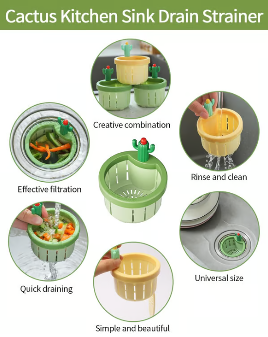 🌵【Innovative Cactus Sink Drain Filter】This innovative cactus sink drain strainer features a unique design that adds a touch of whimsy and style to your kitchen or bathroom. Decorative elements not only enhance the aesthetics of the sink area but also effectively filter food particles and debris.