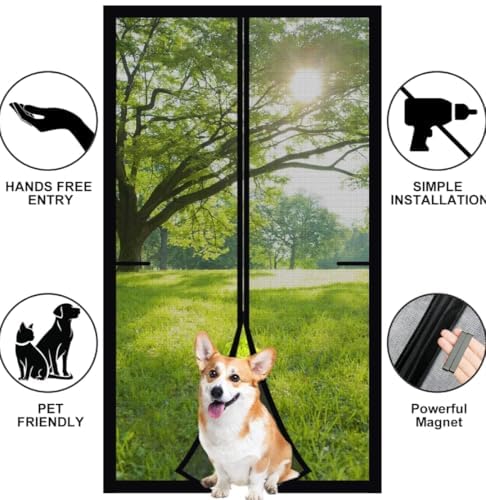 - 【🧡HUMAN PETS FRIENDLY】 Magic retractable screen door allows humans directly walk through while your hands are full. Pets like dogs or cats are also easy to go inside and outside of your house. The screen net helps keep insects, mosquitos and flies out.